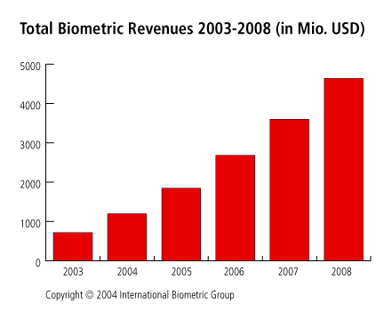 All visitors with a classical passport will be "punished" with a costly procedure for acquiring a visa. This forces all countries to introduce the biometric passport within a short time, as the deadline for a visa-free entrance in the US without biometric passport is October 2006. The market for biometric passports is expected to explode from USD 719 million in 2003 to USD 4'639 billion in 2008!